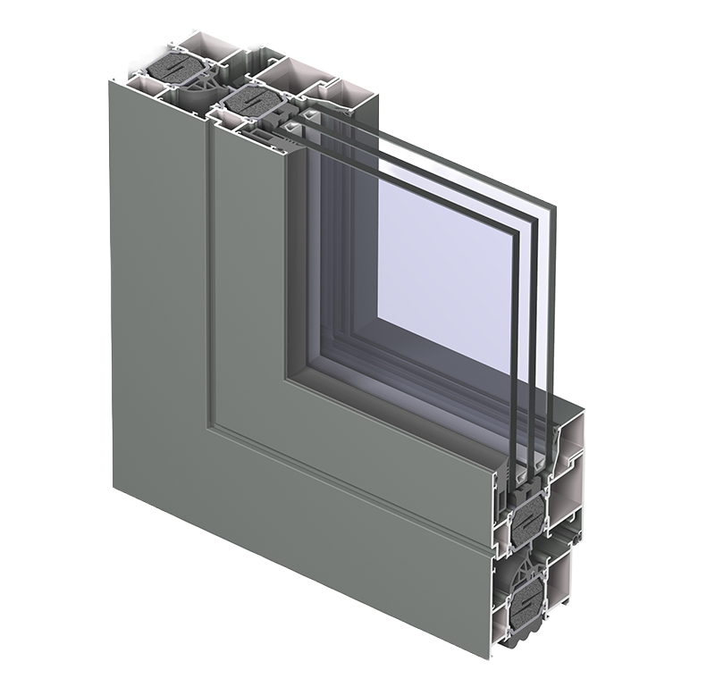• high-insulation aluminium system suitable for energy-efficient buildings